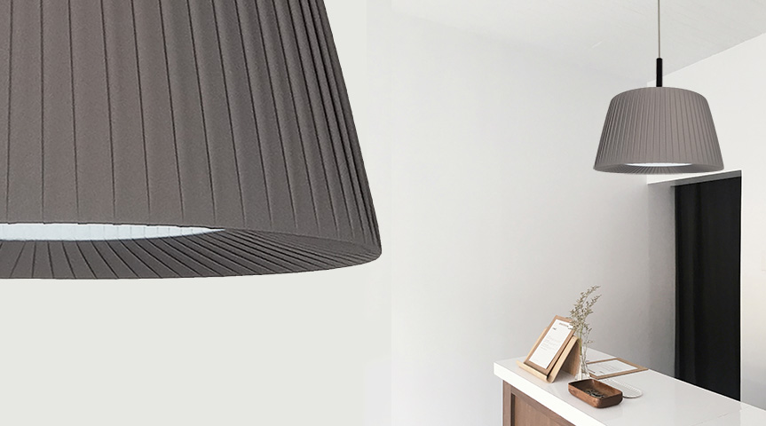Handmade ribbon lamp. Balanced and distinctive, its texture provides natural lighting.