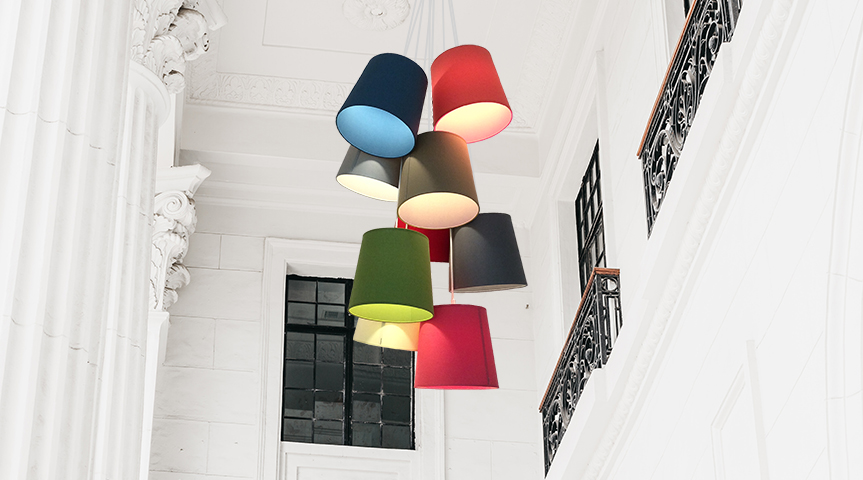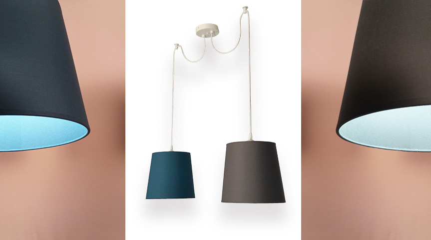 A lamp that brings freshness and quality with a balanced design where colors play the lead. Composition of lampshades with textile finish inside and outside. Discover the different options available.